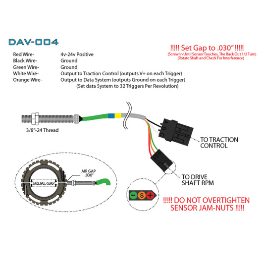 Davis Technologies 8 or 32 Tooth Drive Shaft Sensor – Single Channel Output DAV-001